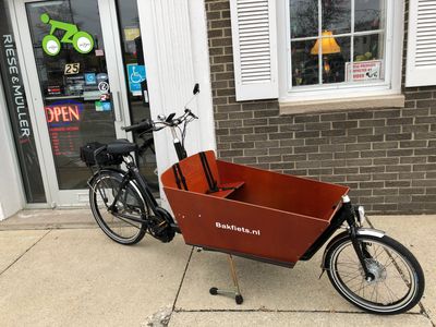This is John's new Bakfiets.nl Cargo Bike Long outfitted with a Bafang 500 watt Mid-Drive motor w/ 720 watt hour battery.
